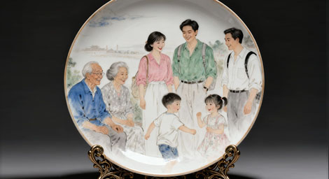 A cherished family dinner scene painted on a porcelain plate, capturing the warmth of our annual gatherings.