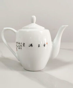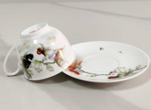The porcelain’s translucent white glaze mimics ancient Chinese “mutton-fat” jade, achieved through a 24-hour kiln firing. The goldfish designs are accented with subtle crimson, reminiscent of Monet’s water lilies in their fluid elegance.